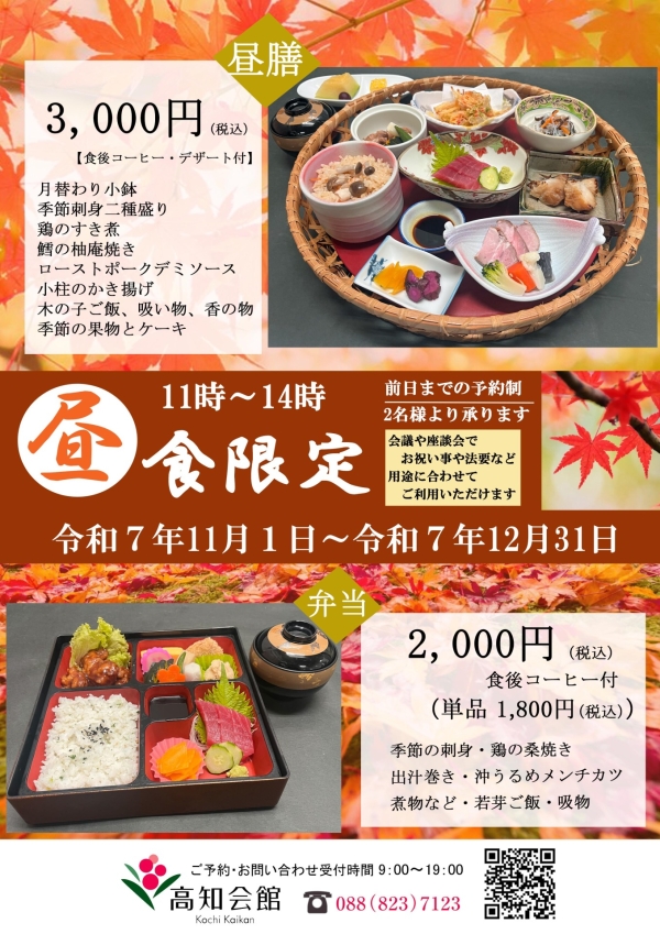 昼食限定プラン 昼膳 ◎料金 ・おひとり様 3,000円(税込) ※食後のコーヒー付。2名~20名様まで承ります。 会食のお集まりやお祝い事や法要などでご利用いただけます。 食後にケーキとコーヒー付で女性に人気のプランです。 弁当 ◎料金・おひとり様 2,000円(税込) ※コーヒー付。 会議や昼食会等にご利用ください。 弁当のみ ¥1,800(税込)もお受けできます。 < 前のプランへ プラン一覧