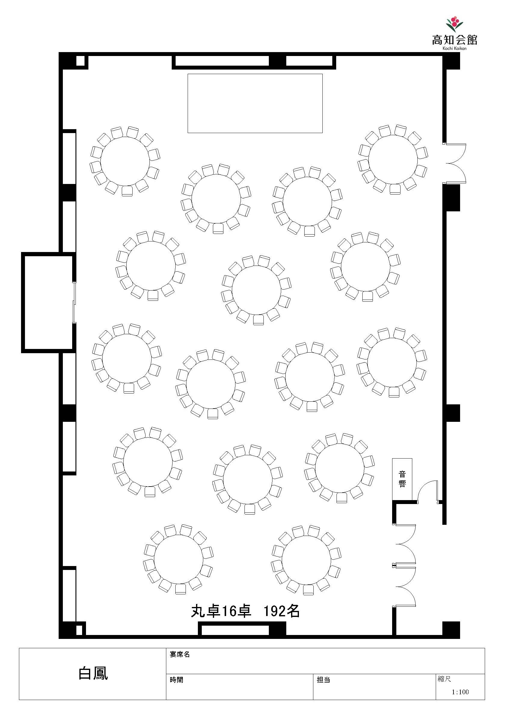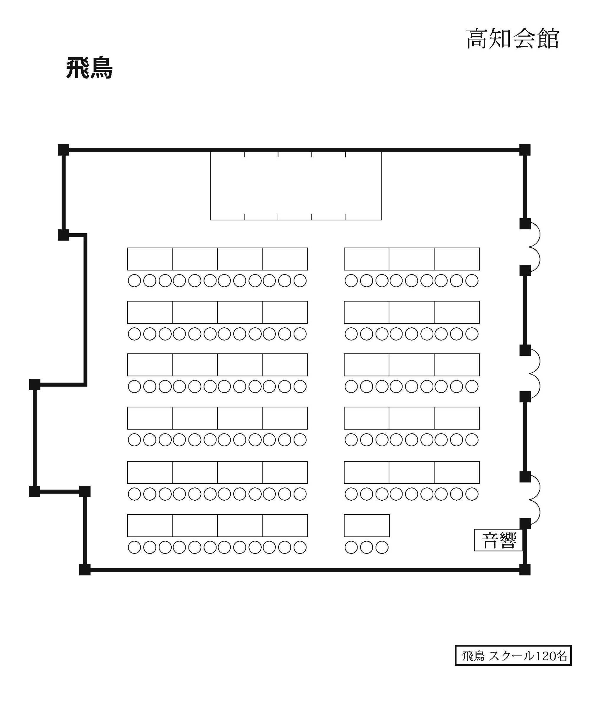 | 会議 収容人数 | 椅子のみ 160名様 スクール 120名様 口の字 60名様 ※テーブルプランにより定員は多少異なります。 |