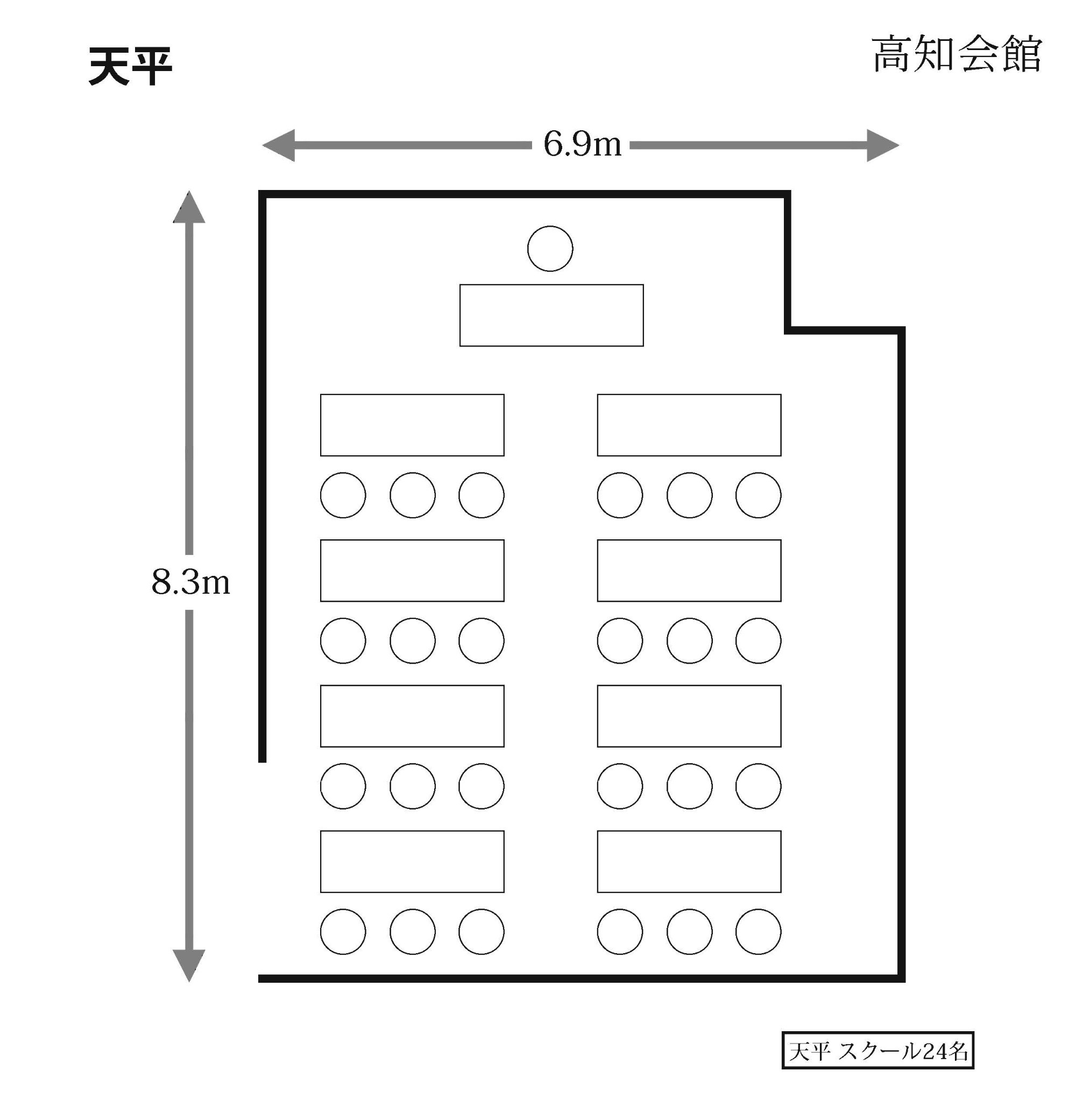 | 会議 収容人数 | 椅子のみ 45名様 スクール 24名様 口の字 24名様 ※テーブルプランにより定員は多少異なります。 |