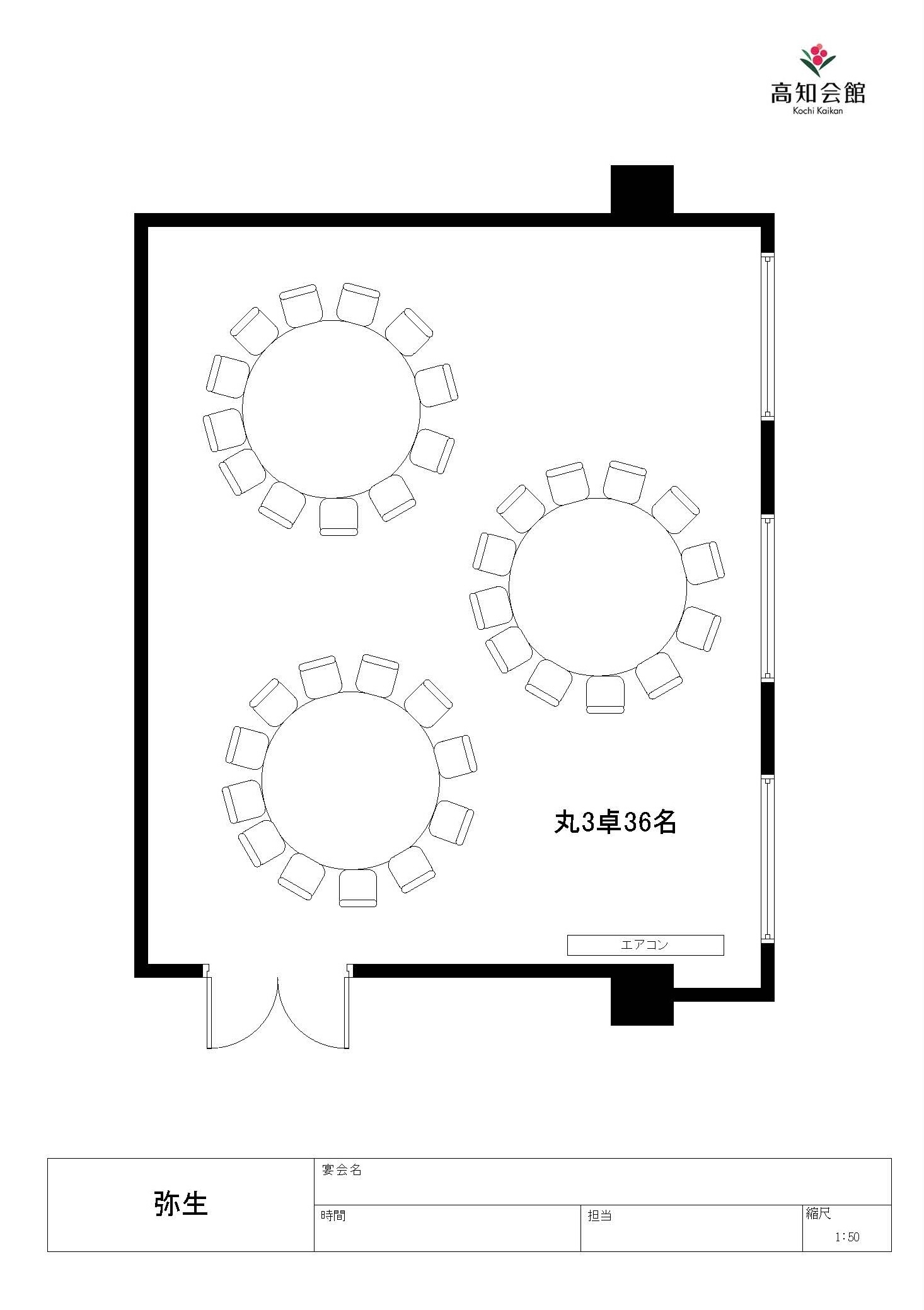 | 会議 収容人数 | 椅子のみ 50名様 スクール 36名様 口の字 30名様 ※テーブルプランにより定員は多少異なります。 |